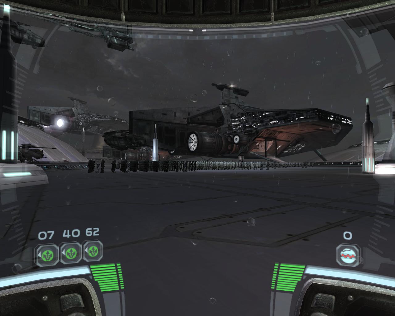 | Huge docking bay, hundreds of soldiers, pouring rain, it's like the start of every war deployment |